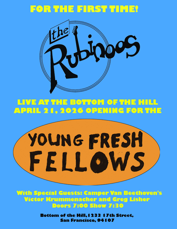 We are psyched about the upcoming show with The Young Fresh Fellows at Bottom Of The Hill in San Francisco, Tuesday April 21st! And don’t miss Victor Krummenacher and Greg Lisher from Camper Van Beethoven!